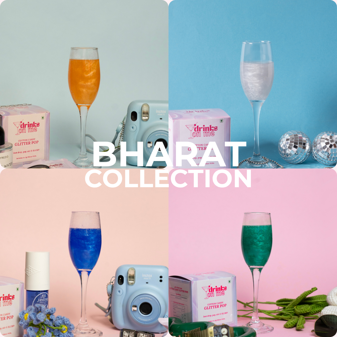 Once the cotton candy is dropped into your favourite clear, bubbly beverage, the cotton candy dissolves leaving your drink a magical, bright Bharat themed colours and a tad bit sweeter. Be sure to give your drink a good stir to see the full effect of the glitter!